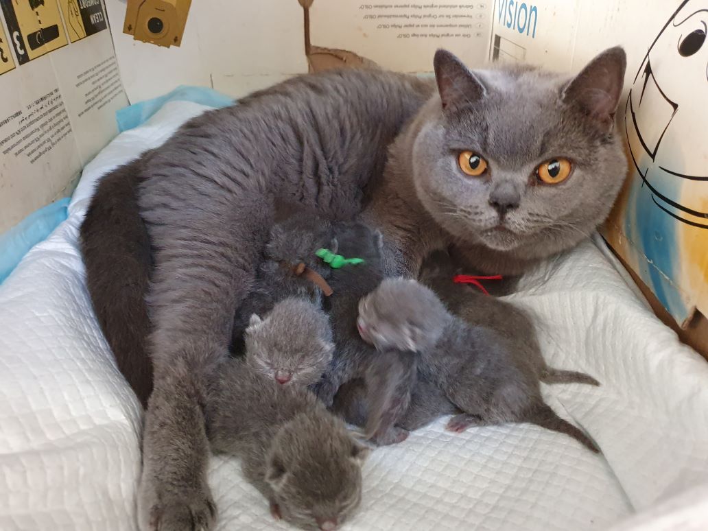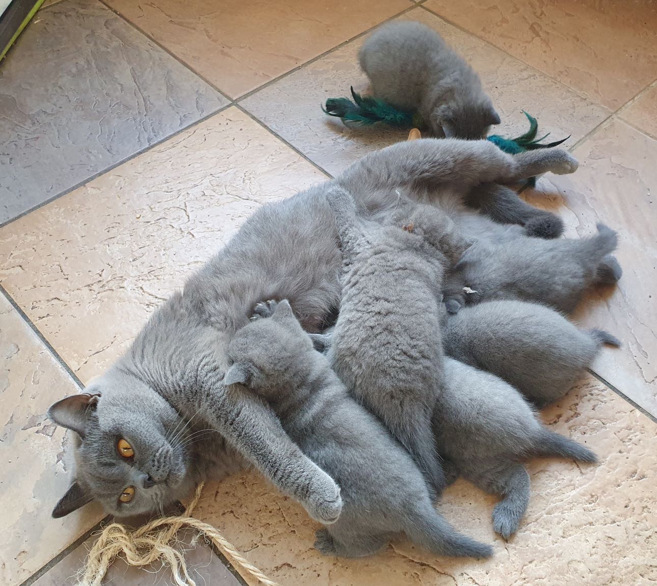 Op 9 Augustus 2024 is Guusje moeder geworden van 6 mooie blauwe kittens. Ze had een hele makkelijke en snelle bevalling. Het gaat top met moeder en kinderen. Het zijn 5 katers en 1 poesje geworden.